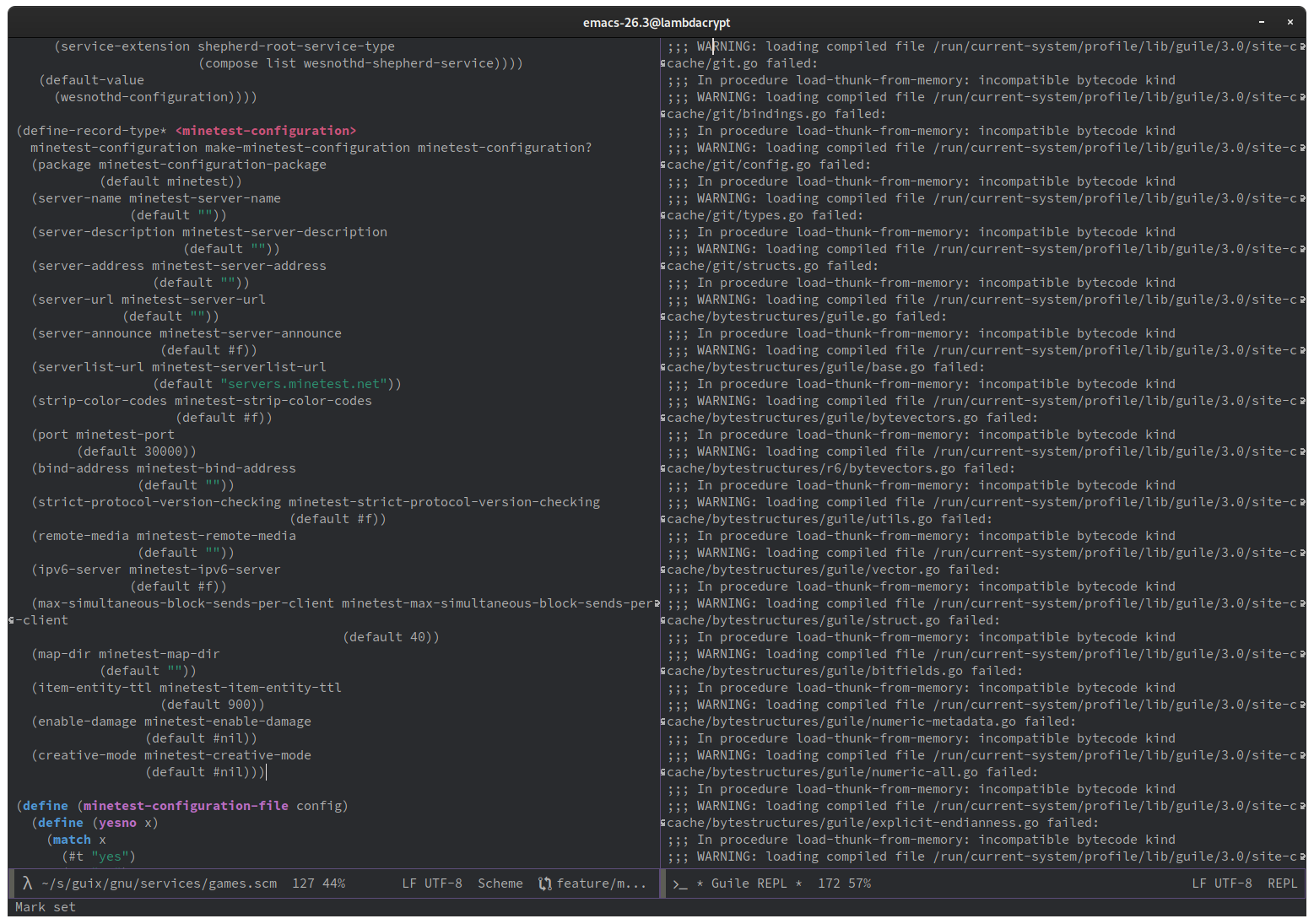 <jfred[m]>ahh, I think setting `guix-load-path` has done the trick <jfred[m]>although I'm not entirely sure how, since I'm still switching to a repl with the generic geiser commands... maybe `guix-devel-mode` did something, or maybe that was a red herring and guile actually just finished compiling stuff over time :P <apteryx>lfam: phew, I've just emailed the patch series for inkscape 1.0 <usney>What are the things I need to do after I run the installation script? <usney>I did guix pull and then installed ungoogled-chromium and it crashes and doesn't work this is the first program with guix that I ran into this issue. <usney>I think it might be something I forgot to install? <bav[m]>usney: which crashes? ungoogle-chromium or guix? <usney>ungoogle-chromium I'll pastebin the output <usney>I am using it on a foreign distro by the way <usney>I never had this happened before all the other times I have used it <usney>it is complaining about not being able to sandbox or something? bav[m] <usney>I know what sandboxing is it is a security feature <usney>maybe they forgot to compile it for that feature? <bav[m]>usney: do you have user namespaces enabled on your system? <usney>you think I could not be a part of the guix group or something? <bav[m]>I don't think that would be an issue <usney>you mean user namespaces for the sandbox containers for chromium to be able to use them? bav[m] <bav[m]>right, I assume that's what chromium tries to use <bav[m]>but did you read the mentioned doc about using a SUID sandbox helper? <usney>I'll look at that tomorrow I'll keep that in my notes to do. <usney>I need to be at work tomorrow in the morning. <bav[m]>I've not used guix on a foreign distro, so not sure if the suid helper works <usney>I will document all this for solving my issue tomorrow <usney>sorry for being lazy I could have look that up in the error log I was just looking for a fast fix since I need to go to sleep soon. <usney>but I help troubleshoot other users problems too sometimes <usney>bav[m] this doesn't look good <usney>I don't understand what they need that feature intel has hardware monitoring for years <usney>looks like more of a privacy issue right there <srandom>I defined a package that uses the source code of the git repository. How to calculate (sha256 (base32 "xxxxxxxxxxxxxxxxxxxx"))? <srandom>guix download does not seem to be used in git repositories <usney>you can use the sha256 or base32 package to make those numbers <usney>just make sure you use the option to create and not check the file <usney>sha256sum is probably what it is called <bav[m]>or `guix hash -rx /directory/of/git/clone` <usney>not sure about the program for base32 <usney>yup that is faster so I'd recommend that way that bav[m] said <usney>Gnu/Linux has many ways to solve the same problem <bav[m]>srandom: just make sure the git clone is checked out to the proper commit/tag beforehand <ubuntuxp>Is there a particular reason why gdm doesn't use wayland? <htgoebel1>civodul asked me to but some topic on the wishlist. How do I? <kmicu>Hi ubuntuxp: GDM is a login manager only. Iirc there’s no official support for Wayland on Guix System yet hence GDM starts Xorg like any other login manager in Guix System. <htgoebel1>civodul: You asked me to change bug#41093 into a wishlist item. Where do I send this to? <efraim>I killed guile3.0-gnutls on powerpc after 25 hours :/ <efraim>didn't think it would take that long *janneke is building linux .. <janneke>a hurd vm is (still) built inside a linux-qemu-vm <janneke>as soon as that works perfectly, mothacehe will help us stop doing that ;-) <mothacehe>heh I hope it's not that explosive anymore because I pushed wip-disk-image to master a few days ago :) <mothacehe>I'm working a race condition in Shepherd, but that's next on my list! *htgoebel1 still wants a bug interface which does not require expert knowledge to use <janneke>mothacehe: you did! \o/ ... oh, am i soo deep into hurd that i missed that <janneke>mothacehe: so what's missing then for hurd next to grub-non-efi? <mothacehe>janneke: Besides grub-non-efi, I hope its just some plumbing <mothacehe>Did you find the issue with hurd being not cross compiled? <janneke>mothacehe: almost...when "hurd-etc-service" (a trivial, good example to help debugging it) does: (file-append hurd "/etc/login") that gexps "gets expanded" at the wrong time/in the wrong environment <efraim>well, the uvesafb service should be fixed soon on non-intel-linux architectures soon <rekado_>I restarted guix-daemon and reran guix gc -C0 <janneke>first, i thought i needed to do something like (file-append (let-system system hurd) "/etc/login") <rekado_>8 hours ago. It has finished since then. <efraim>I might need a new goto phrase for non i686 and x86_64 architectures than non-Intel <janneke>but i think the idea is now that we can delay expansion, or wrap it <civodul>mothacehe: oh nice, i had completely overlooked your replies re wip-disk-image! <rekado_>so now is a good time to disable deduplication, no? <civodul>so the deleting-unused-links phase went faster this time? <efraim>would it help to put /gnu/store/.links on its own storage? <rekado_>would that even work? These are hardlinks <cbaines>it's also the biggest bit of the store <rekado_>I don’t know what went wrong before, but my lizard brain says that restarting the daemon helped <civodul>rekado_: it's a tradeoff: if we disable deduplication, GC is faster, but it needs to run more often (maybe very frequently or with a higher threshold) <efraim>maybe? I don't know, I'm don't know enough about it <cbaines>there are a few issues, but I think relying on substitutes more, rather than keeping everything in the store is a way to avoid having to have such a large store <civodul>cbaines: having a separate long-term storage you mean? <janneke>mothacehe: iow, the hacks i had using (with-parameters ..) are all fubar; gexps will "do the right thing" if we let them, is the idea <rekado_>cbaines: I don’t understand. 