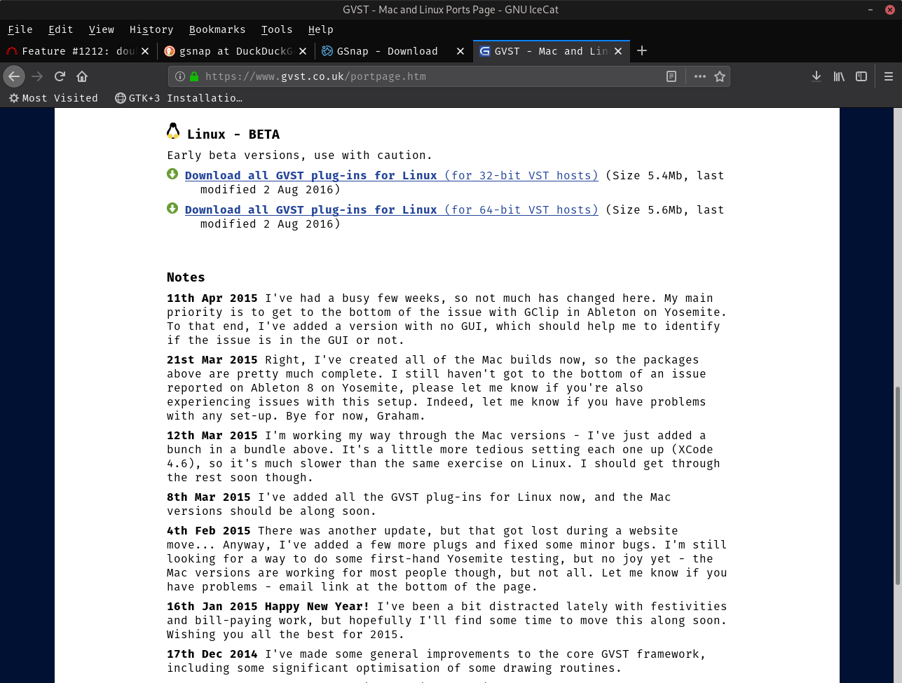 <sneek>Welcome back peanutbutterandc, you have 2 messages. <sneek>peanutbutterandc, nckx says: Indeed I was mistaken: it was a Yeelong machine but was stolen in Argentina ??? He now uses a Librebooted TP like a pleb. <sneek>peanutbutterandc, str1ngs says: . as far as I can see tuxguitar is missing some plugins. probably minimum tuxguitar-alsa. these need to be added to the build. will try to figure out more when I have time. <peanutbutterandc>nckx, TPs seem to be the most popular thing among those wanting all-free system. Perhaps this will change once RISC-V laptops hit the market? Risc-v pinebooks, perhaps? <peanutbutterandc>str1ngs, I see. I look forward to being able to use only guix-installed tuxguitar on my system <str1ngs>peanutbutterandc I will try to look at when I have more time. <peanutbutterandc>So, I have encountered this strange issue: `guix upgrade` has been stuck (even after another `guix pull`) on "building /gnu/store/.....-mercurial....drv" at the 'check' phase for the longest time. Strange. <str1ngs>peanutbutterandc: I did get Tuxguitar-alas plugin to build. but then there was a jni issue <str1ngs>on the bright side, I got jack and fluidsynth working finally <str1ngs>so my midi keyboard can play a gande piano <str1ngs>peanutbutterandc: pianobooster is next on my list to create a package for. I've been pretty busy with qtwebengine and qutebrowser. though I think that's finally done. *kmicu now needs to sub to all guix mls cuz news.gmane.org is down and news.gmane.io is not acceptable. Never trust a centralized projects, yey ヽ(*^▽^)/ <str1ngs>peanutbutterandc: actually guitar is my main instrument <FriendFX>Hey experts, I just tried to start my PC from a USB flash drive with GuixSD and was expecting an option to start a live system to try before installing, but couldn't find anything obvious... is that expected? <str1ngs>FriendFX: that is expected there is not GUI installer at this time. so a liveCD does not make sense <str1ngs>unless the installer has changed, if so someone correct me :P <peanutbutterandc>str1ngs, I see. I'm so glad that someone else besides me likes the project. Perhaps you should write to the original developer, too. The project is on my list of almost-dead-projects-that-I-will-someday-try-to-revive-if-I-become-competent-enough. I see. Then I don't need to worry about finding digital guitar amps in the gnu distribution. :) <str1ngs>peanutbutterandc: which project pianobooster? <peanutbutterandc>str1ngs, You do not happen to have a YT channel or something where you play guitar, do you? Yes, sir. Pianobooster. I did find two forks in GitHub but none from the original dev. <str1ngs>peanutbutterandc: I don't have a YT channel, can't say I'm that good haha <peanutbutterandc>I think pianobooster is a great thing. Synthesia/Linthesia are like the junk food. But pianobooster is proper music educational game, I think. One actually can practice sight-reading. <str1ngs>peanutbutterandc: actually pianobooster was one of the reason I got a midi keyboard to begin with. since it helps with musically theory. with guitar it's pretty easy to bypass musical theory. <str1ngs>peanutbutterandc it's late don't mind all the typo's <FriendFX>kmicu: Thanks for the link, but wouldn't that defeat the purpose of testing it on my real hardware? I'm mainly interested about support for WiFi cards etc at this point. <peanutbutterandc>str1ngs, Absolutely not. Typos are fine. I am glad that you like pianobooster. This repo: https://github.com/captnfab/PianoBooster seems to be the closest to getting pianobooster up again. Perhaps you might consider this instead of the sourceforge one. But I am not sure. Since I don't have a MIDI keyboard now, I haven't tried it yet. <str1ngs>peanutbutterandc: I will look at that when I have more time. <peanutbutterandc>str1ngs, Of course. I wish you all the best. Thank you for your hard work. I, for one, will surely benefit from it. <kmicu>FriendFX: if that’s the goal then indeed, vm is not useful. Regarding WiFi upstream Guix System (and generally libre firmware) only supports ar9271 and ~2012 broadcom b43. <kmicu>(and generally if you have a modern wifi hardware then that’s not supported for sure) <FriendFX>kmicu: Thanks for the info. My Ubuntu system reports I have a BCM4322, currently using a proprietary driver. I guess the best bet is to install GuixSD on another flash drive on the same machine to test... <peanutbutterandc>Since I don't use mercurial, really, and was just trying to `gource` a repo that I liked; I'm going to retry by uninstalling mercurial. *kmicu in old laptop has BCM4311 802.11b/g WLAN (rev 01) which is supported. Lucky me. <peanutbutterandc>kmicu, If one can use wifi without any additional drivers on a machine using debian (official distro), does that mean wifi would work for guix too? <kmicu>I don’t know what Debian installs by default (e.g. on Live ISO) so cannot answer for sure. <NieDzejkob>FriendFX: you can test the wifi when you boot the installer <peanutbutterandc>I see. Debian don't user non-free software in their default official distribution. So I was curious if wifi-cards compatible with debian would work with guixsd <kmicu>That could be the case but someone needs to verify Debian’s LiveCD and its defaults to be sure. <peanutbutterandc>I just removed subversion and tried again and it is still trying to build /gnu/store/....mercurial... I think I will have to go for `guix package --upgrade --do-not-upgrade mercurial`...... and it's still trying to build /gnu/store/...mercurial...drv. Curioser and curioser. <roptat>peanutbutterandc: hg is probably a dependency, not a package in your profile <roptat>do-not-upgrade only prevents upgrade of a package in your profile <roptat>It has no effect if the package is not in your profile <jonsger>I can make it for the FOSDEM and the Guix days :) <peanutbutterandc>roptat, I see. That does make sense. Do you have any idea how I could figure out the culprit and remove it? I kn
